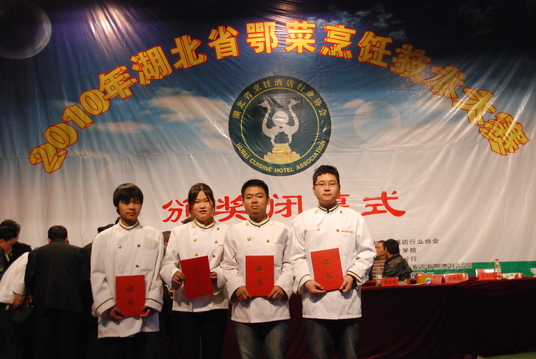 烹饪09级学生秦峰等4人分别获得湖北省鄂菜烹饪技术大赛金、银、铜奖