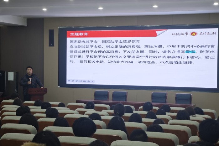 本网讯(通讯员 刘乐乐)12月7日,我系辅导员依托晚讲评平台,面向全体学生开展国家励志奖学金、国家助学金感恩励志教育主题宣讲活动,引导学生知感恩、明责任、勇奋进。