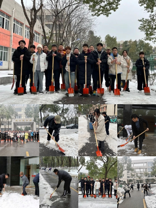 本网讯 开学前,受强冷空气影响,湖北大范围持续低温、雨雪、冻雨、冰冻等恶劣天气,为确保晚讲评和新学期开学正常进行,我系师生积极响应党委组织部、学生工作部、团委等部门倡议,主动参加“铲雪除冰”行动。