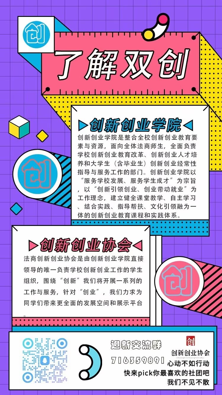 为了进一步激发学生的创新创业活力,促进学生综合实力的提升,搭建创新创业合作交流平台,培育具有创新精神和创业能力的综合性人才,诚邀全校范围内对创新创业抱有浓厚兴趣、勇于探索未知、敢于挑战自我的同学们加入创新创业协会,创新创业协会是由万搏买球联赛官网(中国)官网团委、创新创业万搏买球联赛官网(中国)官网下设的负责学校创新创业工作的院级学生社团组织。现启动2024年创新创业协会会员招新工作,现将具体安排通知如下: