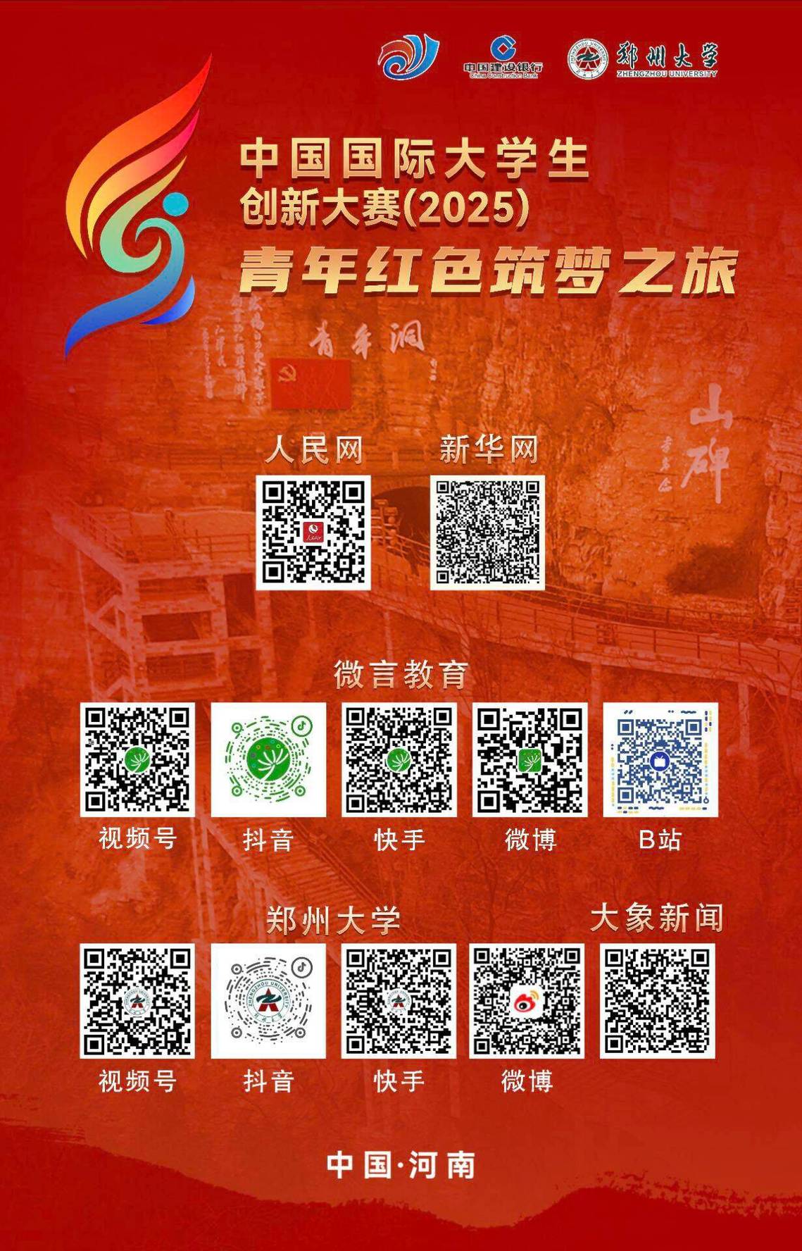 4月23日(星期三)上午9:15-10:00,中国国际大学生创新大赛(2025)“青年红色筑梦之旅”启动活动将在河南安阳红旗渠青年洞文化广场举行。根据教育部通知要求,请各系高度重视,动员广大师生线上收听收看。