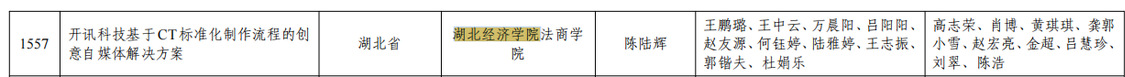 4月9日,教育部公示国赛获奖名单,我院工商管理系校友陈陆辉创业项目获中国国际大学生创新大赛(2024)(即“互联网+”大赛)高教主赛道全国总决赛铜奖,创立公司为武汉开讯科技有限责任公司。