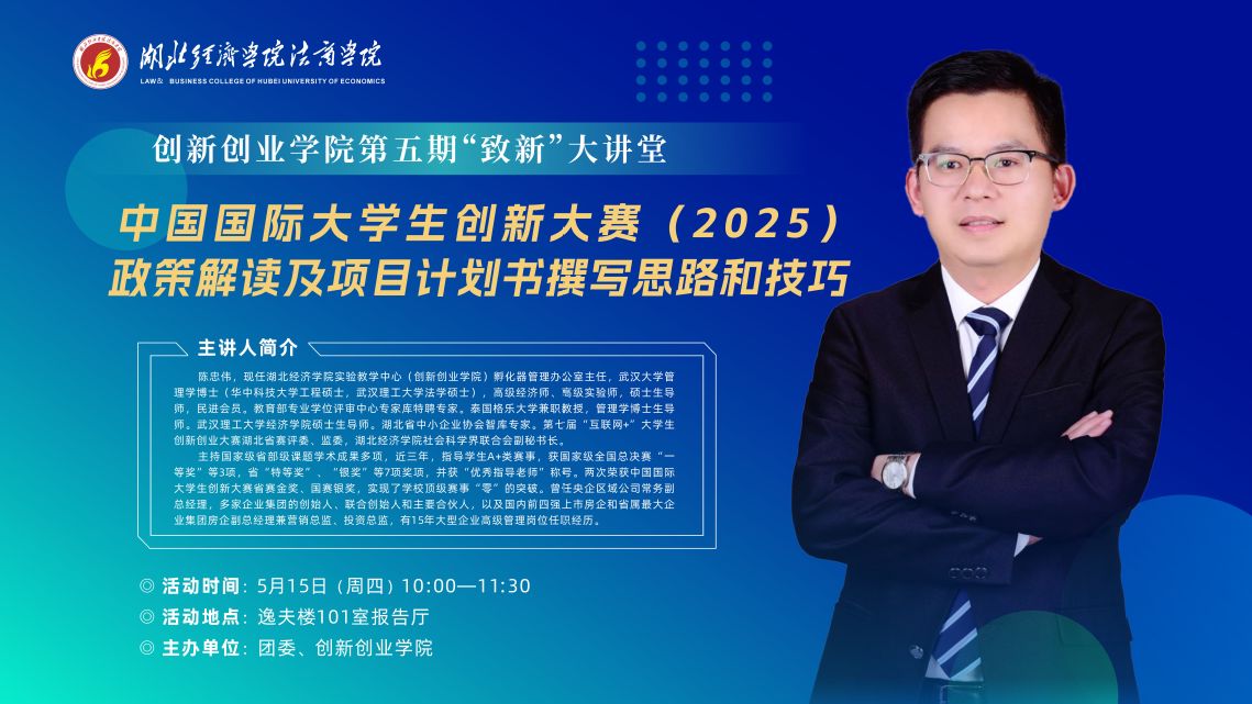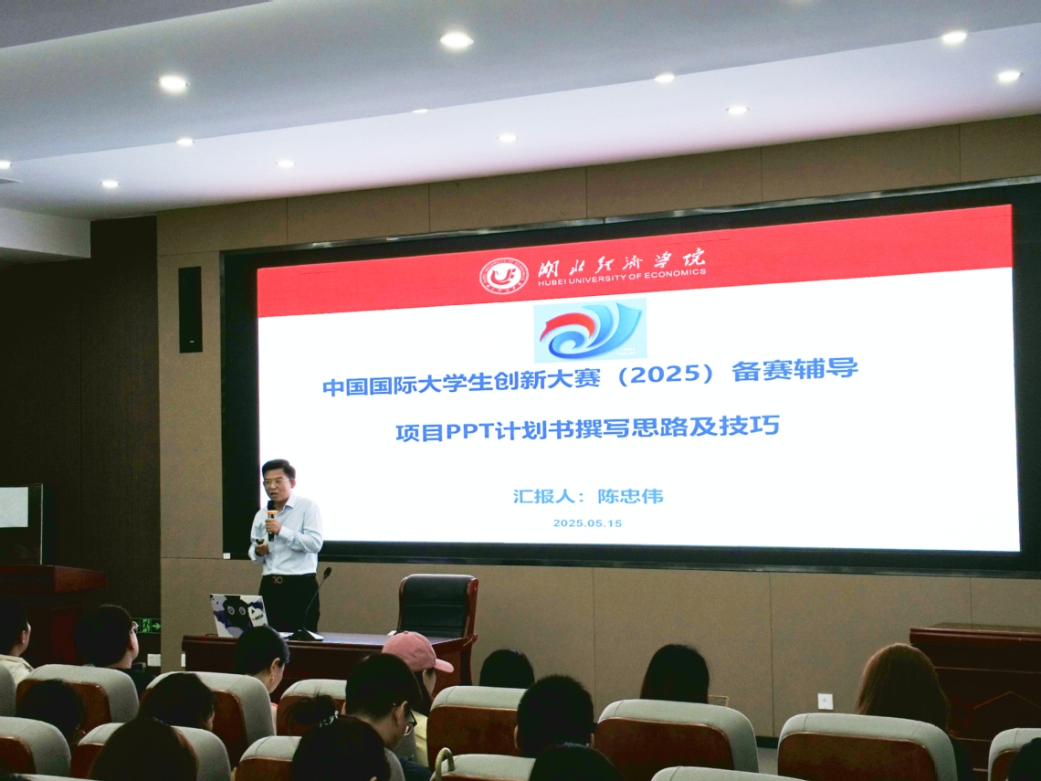 本网讯(通讯员王亚婷 摄影郭锴夫)为了进一步加强理论教学与实践教学相结合,创新教育方式方法,充分发挥“以赛促学、以赛促教、以赛促创”功能,强化科教协同,有效推动“专创融合”和赛事成果转化,提高学生综合能力和素养,5月15日上午,创新创业万搏买球联赛官网(中国)官网第五期“致新”大讲堂在逸夫楼101报告厅举办。湖北经济万搏买球联赛官网(中国)官网实验教学中心(创新创业万搏买球联赛官网(中国)官网)孵化器管理办公室主任陈忠伟作培训讲座。团委、创新创业万搏买球联赛官网(中国)官网负责人周志、各系双创专干及师生积极参与,现场座无虚席,活动由高志荣主持。