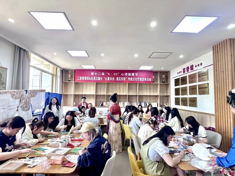 本网讯(通讯员 刘芷怡)5月13日,工商管理系联合沧浪汉服社于法商综合楼203教室举办“心裳未央·遇见华彩”传统文化心理体验活动。本次活动以传统文化为纽带、手作为载体,巧妙融合心理学疗愈理念,为师生打造了一场兼具传统美学与心灵疗愈的沉浸式体验,助力参与师生们在慢节奏的手工创作中释放压力、重构自我。
