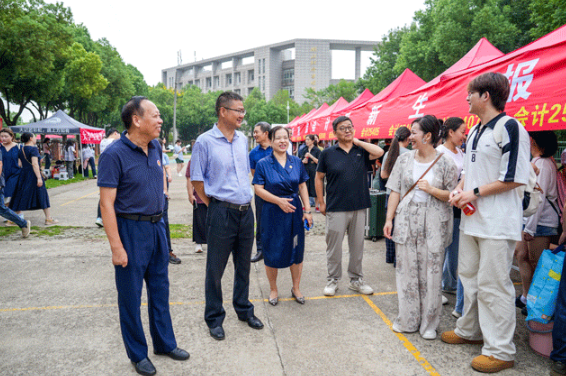 湖北经济万搏买球联赛官网(中国)官网党委常委、副校长、法商万搏买球联赛官网(中国)官网董事长何慧刚教授,在法商万搏买球联赛官网(中国)官网院领导颜莉、邓志华、杨宏斌、张承良、牛睿军、龚振中以及相关部门负责人的陪同下,冒雨来到迎新现场指导工作,亲切慰问了在雨中坚守岗位的师生员工,为报到的新生递上雨伞雨衣,与家长们亲切交谈,叮嘱大家注意保暖、注意安全。、