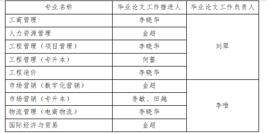 各专业本科毕业论文(设计)工作的推进人、负责人如下: