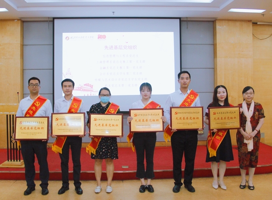 党委副书记、副院长杨宏斌为优秀共产党员、优秀党务工作者颁奖;院长、党委副书记王红为先进基层党组织授牌;党委书记张治武为被授予“党员先锋岗”的集体和个人颁奖并授牌。