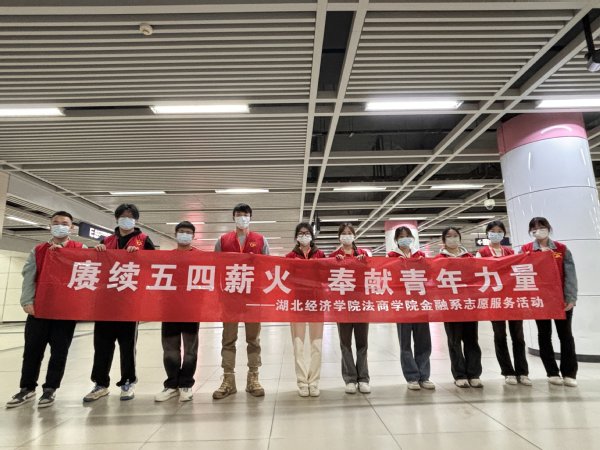 本网讯 5月4日青年节,金融系学子主动请缨,报名志愿服务,前往中南路地铁站协助站内人员开展五一长假人流引导活动。