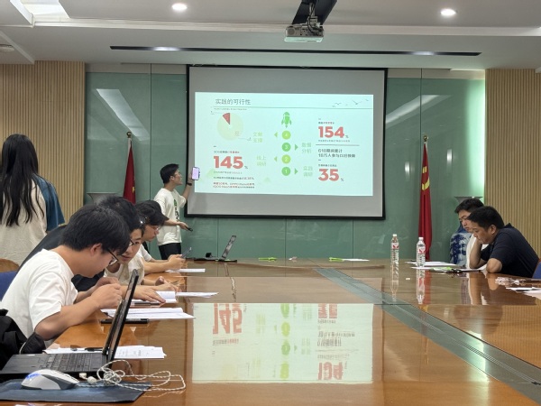 本次暑期社会实践答辩展示共有七支队伍参加,各队团队代表依次就团队暑期社会实践活动准备情况进行展示。答辩环节中,评委鲁聪老师对于各个队伍的社会实践选取地点、人员结构、实践方案等提出疑问,其中,对社会实践中如何开展“爱国主义教育专项”与“挺膺担当行动专项”做出重点强调。各团队代表答疑完毕后,鲁聪老师对此次会议作出总结,鼓励金融学子跨专业、跨年级组件暑期社会实践队伍,发挥团队成员的专业及特长优势,并希望金融学子在实践中求真知,悟道理,积极融入社会。