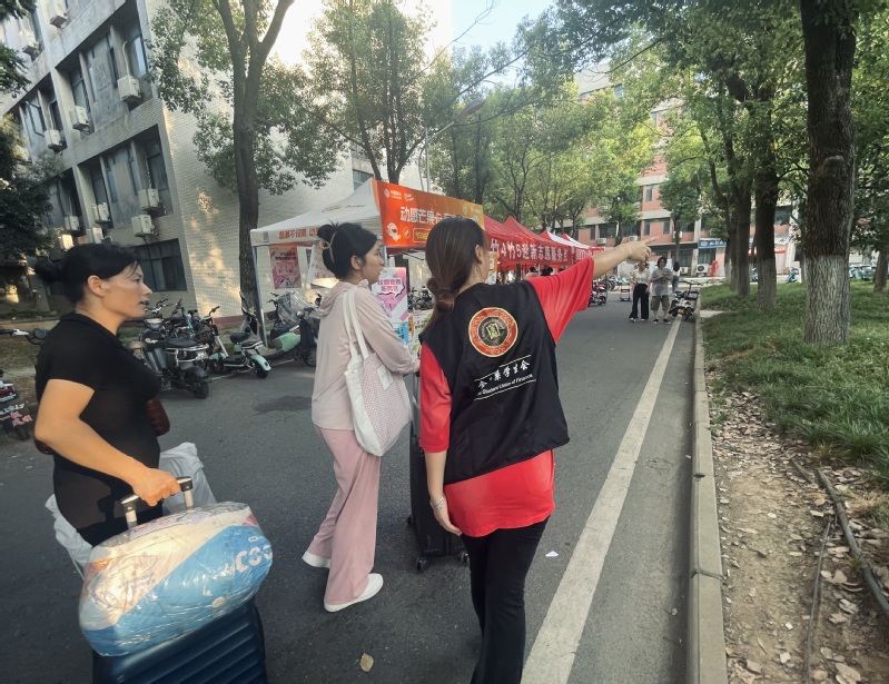 在早晨6点钟,金融系学生会团总支集体成员为积极欢迎大一新生,协助新生班级学生了解寝室位置及新生报到的全部流程,为新生家长了解我校基本情况做准备。清晨的阳光洒在操场上,校园里热闹非凡,金融系团总支志愿者们身着统一的志愿者服装,热情地迎接每一位新生,为新生引路、搬运行李、办理入学手续、清理床铺等,各院系的学长学姐们也不甘落后,纷纷伸出援手,为新生们解答疑惑,分享经验,让新生们在异乡感受到浓浓的暖意和关怀。