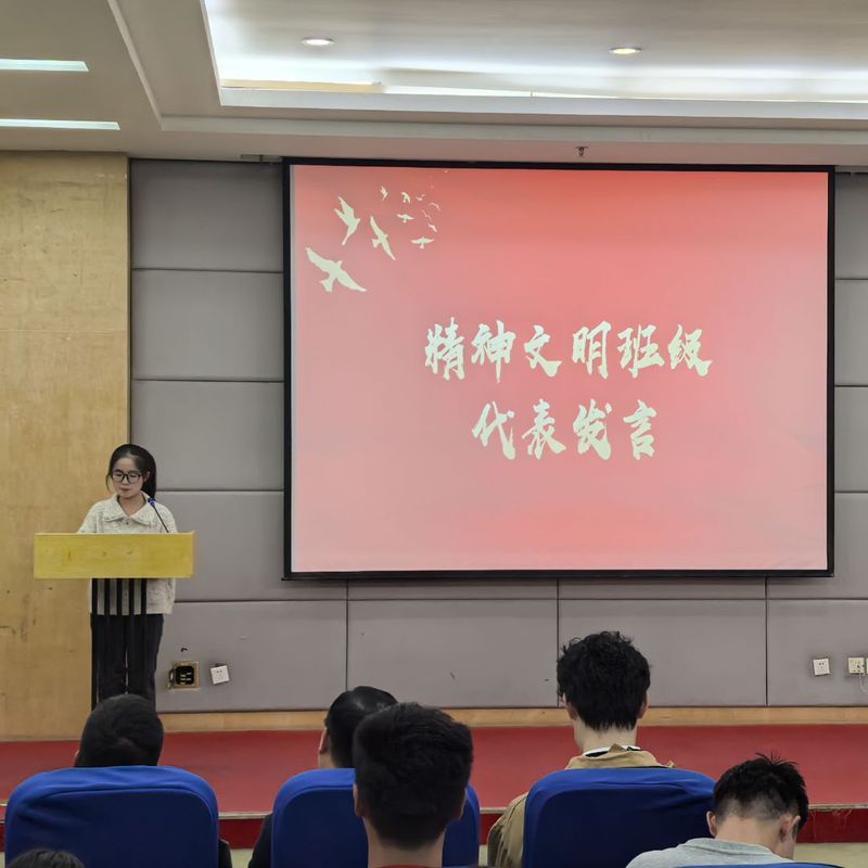 随后,大会为精神文明班级颁奖,获奖班级分别为税收24401、金融24404、金融24401、投资24401,李淑婷、崔芷怡等同学获“优秀运动员”称号,王楚童、杨宏昊等同学获优秀干事。精神文明班级代表董怡君、优秀运动员代表李淑婷分别发言。