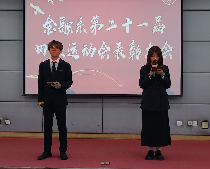 大会回顾了第二十一届田径运动会精彩瞬间,金融系团总支学生会文体部部长杨君豪对本次运动会做工作总结,他总结了整场运动会运动员和志愿者辛勤的付出,展现了金融系顽强拼搏、勇攀高峰的精神风貌,也充分展示了金融系强大的凝聚力。