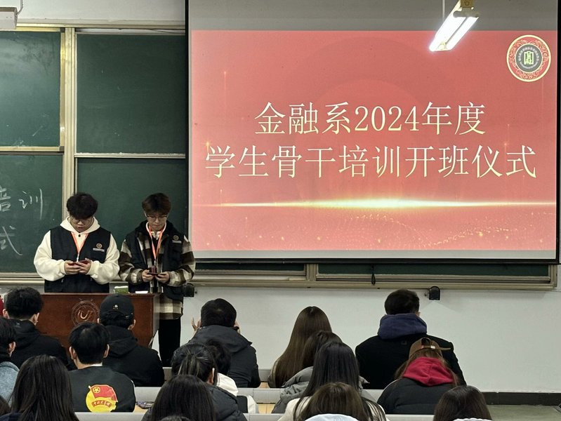 本网讯(通讯员 刘晶蕾 摄影 王惠莹 曾涵熙)11月29日下午,金融系学生骨干培训开班仪式举行,金融系2024级各班班长、团支书及第二十届金融系团总支学生会全体成员齐聚一堂,共同开启这场提升能力、交流经验的成长之旅。