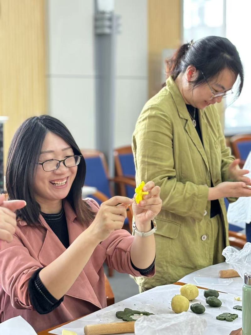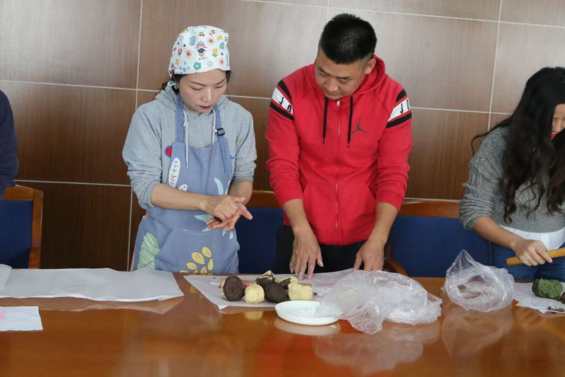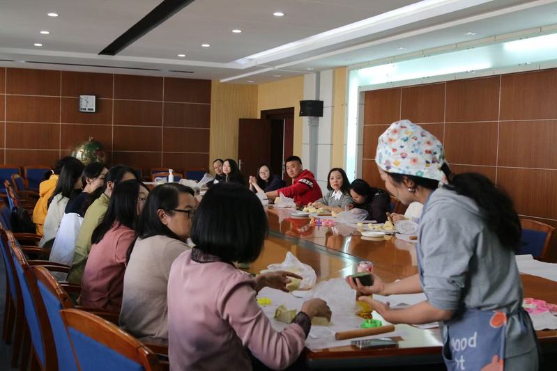 在老师边讲解边演示的指导下,各教职工洗手、消毒,自己动手,体验了曲奇饼干和面、切割、成型、烤制的全过程。拿到原料后,大家跃跃欲试,滚圆、压模、脱模,忙得不亦乐乎。在一双双巧手的揉捏下,一个个圆圆的面饼和各具造型的饼干出现了。现场热火朝天,大家热情高涨,一擀、一推、一包、一揉、一压、一烤都浸透着一份美好的心意。伴随着诱人的香气,快乐的情绪传递给了整个团队。大家纷纷表示,这样的活动很有意义,既品尝了自己亲手制作的月饼和饼干,又增进了同事间团结协作的感情,颇有收获。
