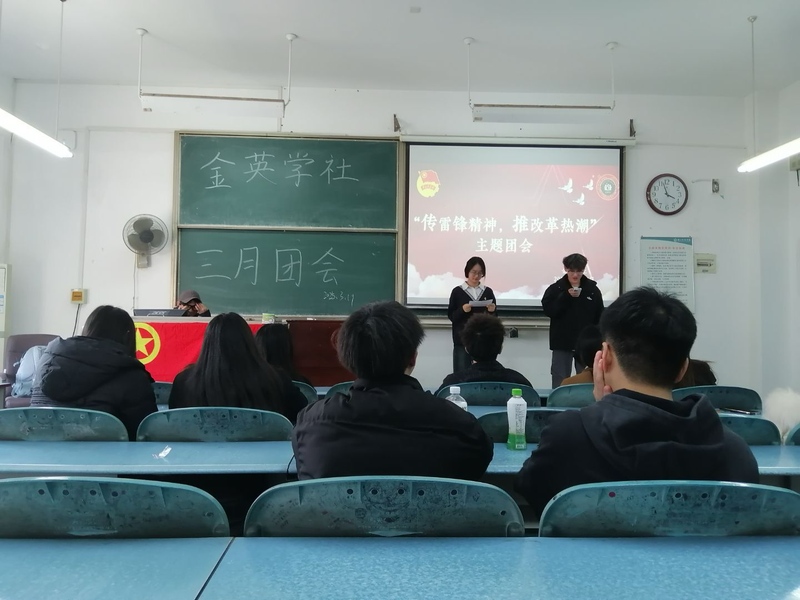 本网讯(通讯员 李文杰)3月19日下午15:50,金英学社在J4-303教室召开团会,主题为“学雷锋——弘扬雷锋精神,争做时代先锋”。本次活动旨在通过学习和弘扬雷锋精神,激励社团成员在新时代背景下争做先锋模范,为实现个人成长和社会进步贡献力量。活动由培训部金天昊和王惠莹同学主持,金英学社全体社员参加,指导老师曾梦玲副教授参会。