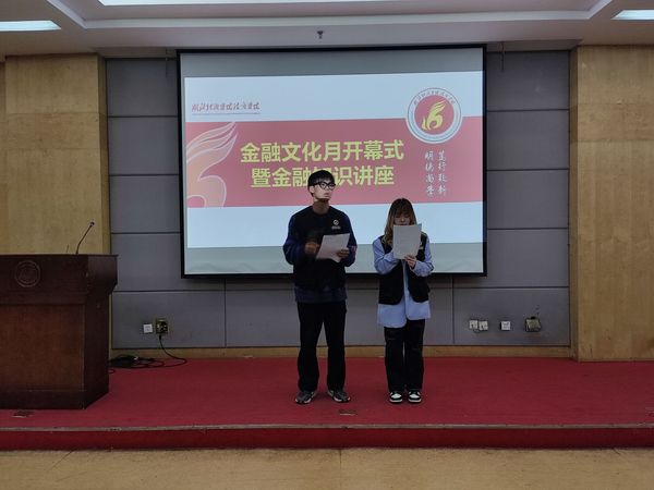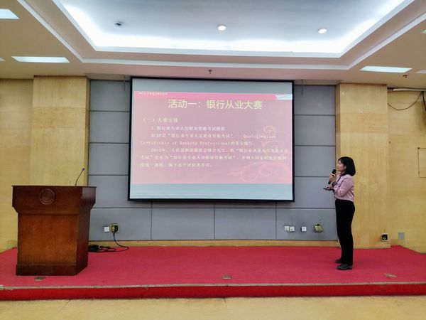 本次开幕式介绍了“金融文化月”相关内容和比赛赛程,由曾梦玲老师从大赛目的、大赛日程、指导老师三个方面介绍银行从业大赛,随后由丁丁老师从比赛内容、比赛日程和指导老师三个大方面介绍保险创客赛项,由阳军和张凯做了金融行业与大学生就业的分享,他们分别从金融行业、证券业务介绍到证券行业发展现状,证券公司部门介绍、岗位介绍以及职业发展路径进行了讲解。