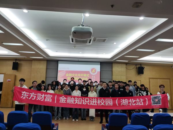 本网讯(通讯员 梁馨颖 摄影 陈佳依 梁馨颖)4月6日晚上六点半在大学生活动中心三号报告厅举办了金融文化月开幕式,金融系团总支书记鲁聪老师,金融系副主任曾梦玲教授、教研室丁丁老师参会,东方财富证券湖北分公司零售管理总监阳军、综合管理总监张凯、东方财富集团高校拓展部湖北负责人余浩阳受邀出席。