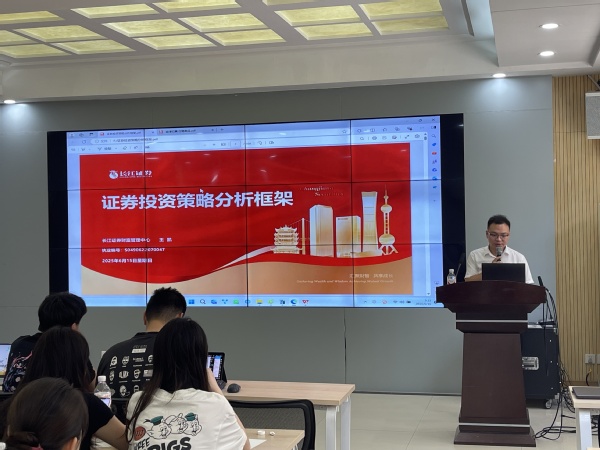 首先,时珺老师介绍了中期实训的内容安排。本次实训将采取校内集中培训与校外参访学习相结合的形式,聘请长江证券企业导师授课,围绕“投资理财如何行稳致远、证券投资策略分析框架、证券投资基金概述、从量价关系分析投资者行为、玩转ETF”等主题开展集中培训。通过集中培训使学生了解市场前沿政策、理解资产配置,认知职业发展路径,增强金融职业道德。