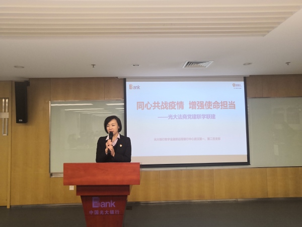 光大法商“联学联建”交流活动在光大银行武汉远程中心的会议报告厅顺利召开,中国光大银行电子银行部远程银行中心处长李艳芳做了题为“同心共战疫情 增强使命担当”的报告,她介绍了疫情初期光大银行武汉远程中心所作的十项正确的决定,避免了疫情在中心的发展。她说,疫情期间,中心的党员承担起了主要的业务工作和志愿服务工作,为保障整个武汉分中心的运营做出了巨大牺牲。光大银行武汉远程中心在党的思想文化建设里主张“阳光文化、崇尚文化、担当文化、家园文化”,居家工作生活创新实践主张“动起来、学起来、晒起来、好起来”,为全员疫情期间居家工作生活保持了凝聚力、活力、温情和干劲,正是一以贯之永不停歇创新党建工作,才得以全员抗击疫情,积极履行社会责任,“光大人”保持“光大魂”。