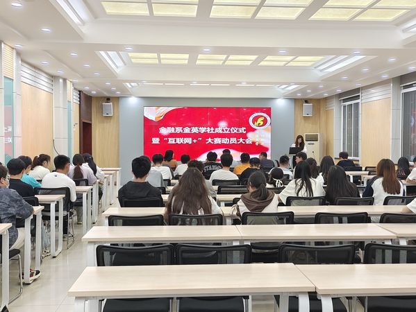 本网讯(通讯员 周澍 摄影 高李彤)5月4日晚18:30,金融系在法商综合楼111举办“金英学社”成立仪式暨“互联网+”大赛动员大会,金融系副主任、副教授曾梦玲、金融系党总支副书记张平平、金融系团总支书记鲁聪出席,金融系金英学社第一届社员参加仪式。优秀校友贺声钰受邀出席。