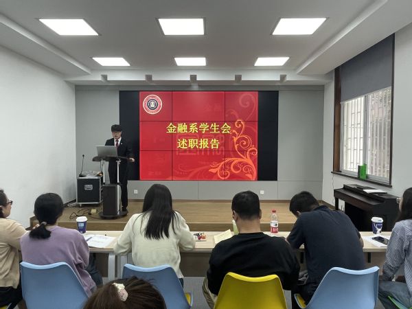 本网讯(通讯员 殷镑尔 摄影 伍丽媛)5月10日上午10点,在法商综合楼108召开了金融系学生组织主席团述职会议,金融系党总支书记朱卉、副书记张平平、系团总支书记鲁聪、副书记钟倩,金融系党总支委员丁丁、余隽及系学生组织主席团成员参加。