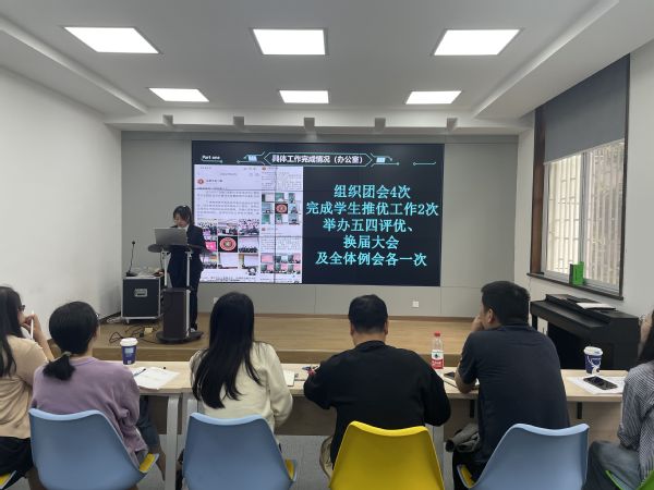 本次会议围绕主席团成员任职一年的组织工作情况和个人取得成绩进行汇报。团总支副书记宋东琳、殷镑尔分别对组织大赛和活动做出回顾并总结经验、对如何强化政治学习、发扬实践精神、开展文体活动和组织建设完善不足点做出系统阐述,并对监督落实学生工作规范化,精确化提出了自己的看法;接着,学生会主席穆宇轩汇报今年开展的文化比赛活动,总结收获和不足;学生会主席刘朱格娅对学生会工作的分管内容、组织建设、成绩收获、后期规划做出具体汇报,提出打造服务同学、清新阳光的学生会理念;学生会主席杨宗辉对学生会学生权益工作的方方面面进行了总结,并提出了改进方法。