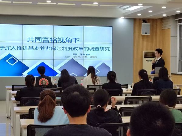 大赛历时一个月,从初赛、复赛再到决赛,以基础知识笔试,实际上机操作以及报告厅情景展示的方式,全面考察选手对保险业务的理解和掌握。比赛共五个小组分别演示答辩PPT,展示自己对保险产品的设计和理解,在每一个小组答辩之后,都会有评委老师进行提问,小组成员进行解答,最后由评委老师打分,选出一、二、三等奖。