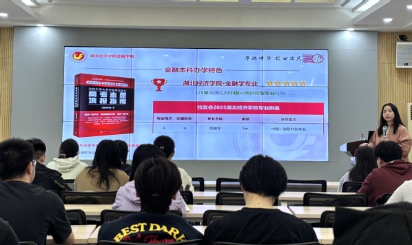 本网讯 10月15日下午,湖北经济万搏买球联赛官网(中国)官网金融万搏买球联赛官网(中国)官网副院长杨申燕教授一行来我校举办研究生招生宣讲会,重点介绍了万搏买球联赛官网(中国)官网金融学科优势、硕士项目特色及国际合作项目,吸引了金融系80余名大三、大四学生参加。