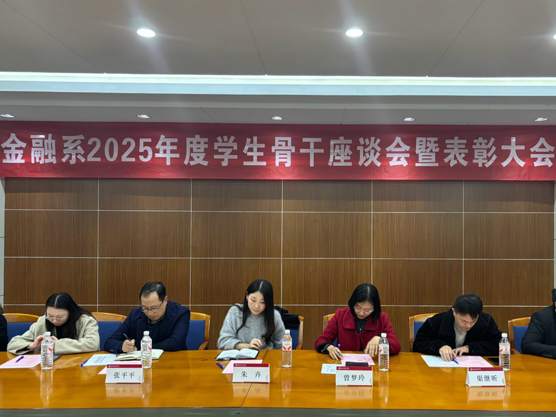 本网讯(通讯员 熊伊冉 摄影 田慧柔 樊群秋)12月5日下午,金融系在法综329会议室隆重召开2025年度学生骨干座谈会暨表彰大会。会议旨在总结年度学生工作成果,表彰先进典型,谋划未来发展蓝图。金融系党总支书记、副主任朱卉,副主任曾梦玲,党总支副书记张平平,团总支书记渠继昕,心理专干钟倩等领导老师出席会议,各学生组织优秀骨干代表参会。