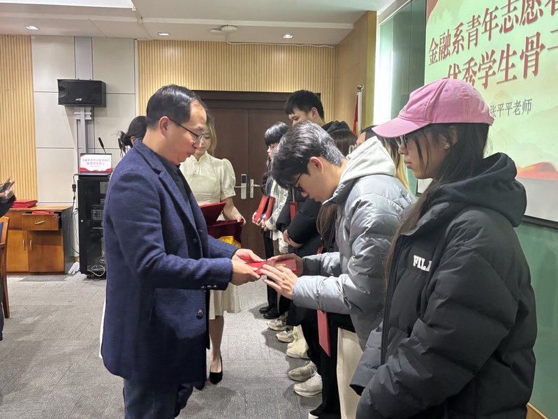 随后,渠继昕宣读了《金融系2025年度优秀学生骨干表彰名单》。钟倩、张平平、曾梦玲、朱卉等领导老师分别为心理发展委员会、青年志愿者协会、金英学社及团总支学生会的优秀骨干颁发荣誉证书,表彰他们在过去一年中的突出贡献。