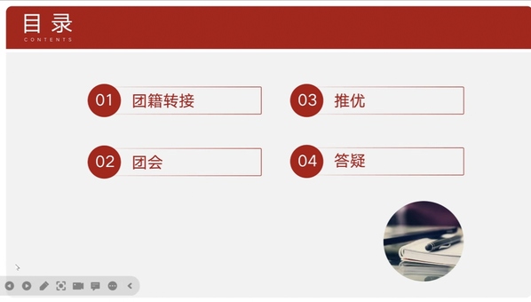 本次会议主要培训了团籍转接、团组织生活会、推荐优秀共青团员作为中国共产党入党积极分子候选人等团支部工作如何开展。金融系团总支学生副书记殷镑尔耐心仔细地讲述了团籍转接的基本流程以及团组织生活会开展流程,以“学习团十九大精神”专题学习会为例,指出各班级团支书在开展团组织生活会时的注意事项,特别强调团旗、团徽的准备以及团组织生活会学习材料的准备要贴近主题、紧扣思想教育,提升团员思想觉悟。