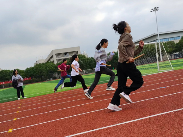 在系学生会的组织下,活动有序进行。各班接力赛成员到达后迅速调整队形,十名男生十名女生分站两侧,时刻准备传递接力棒。虽是大学第一场体育类比赛,同学们都发挥出了惊人的毅力,在踏上赛道的那一刻,现场加油呐喊声响起,每一棒同学都奋力拼搏。最终,23级金创税收班组合队夺下魁首,金融23404队名列第二,金融23302队取得了第三名。