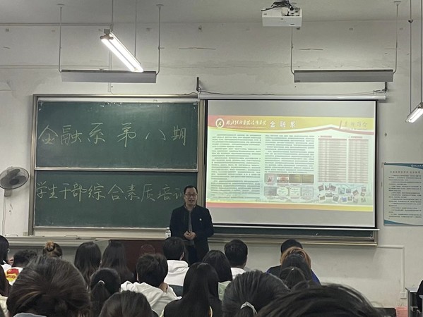 本网讯(通讯员 杨鑫玥)为了更好的了解党的历史,学习党的精神,提升学生干部思想觉悟和政治素养,更好地发挥学生干部的带头作用,2022年3月11日,金融系在逸夫楼教4—105召开金融系第八期学生干部二级团校培训,学习党“不忘初心,砥砺前行”的精神。参加此次培训的有金融系团总支和学生会全体学生干部,团总支副书记周宇、主讲人张平平老师。