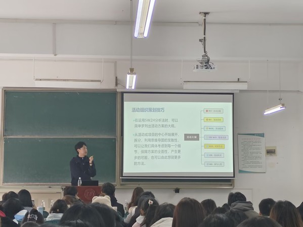 本次课程主要讲解学生组织活动流程培训、活动策划书与PPT制作。课程围绕三个部分展开学习,第一部分,学生组织活动流程培训,讲解如何策划一场活动,应注意哪些问题,培养学员具备策划活动的基本能力,熟悉活动策划流程。第二部分,如何运用word做好一份活动策划书。他说,首先要学习策划书的基本框架,即活动背景、活动目的、活动主题、活动时间和地点、活动流程安排、活动对象、宣传方案、活动预算、风险评估与应对措施、活动总结等基本结构,培养学生骨干的思考与动手能力。
