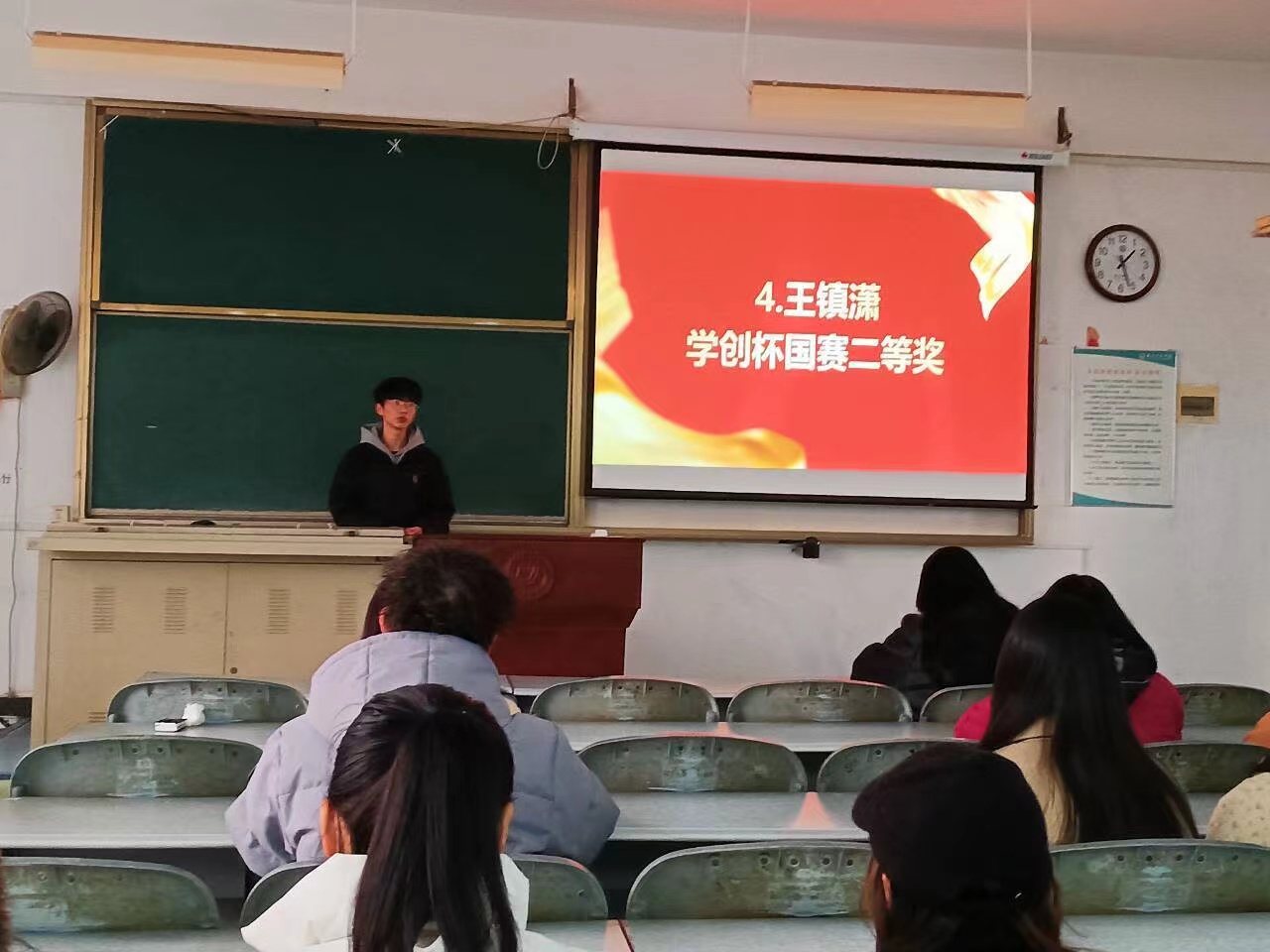 首先,主持人郭锴夫介绍了本次会议的意义与流程。随后4位在2023年的重要学科竞赛中斩获省奖或国奖的选手代表依次分享自己参加大赛的经验与感悟。孙泽琪同学表示在“品牌策划”等商赛中应充分熟悉路演PPT,在答辩面对老师的提问时应具备灵活的临场反应与应变能力。章佳莹同学认为在“市场调查与分析”大赛中应学会运用多项金融计算工具,并可以将科研立项与市调大赛进行结合,两者互为支撑。郭锴夫同学指出在“互联网+”大赛中要保持细心、耐心和恒心,撰写计划书是一个反复修订和不断打磨的过程。王镇潇同学觉得在“学创杯”等沙盘比赛中最重要的是要做好财务预算,在日常模拟练习赛时应勤加训练,在最后冲刺阶段学会分析对手,方能在市场竞争中谋取最大利益。最后,曾梦玲老师组织参会者进行了答疑互动,希望学社成员能够加强交流,主动提惑,互帮互助,互促成长。