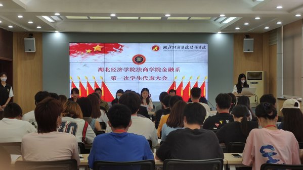 本网讯(通讯员 李佳蔚 梁星羽 摄影 李佳蔚)4月24日上午,金融系第一次学生代表大会在法商综合楼111顺利召开,金融系党总支书记朱卉老师、系党总支副书记张平平老师、系团总支副书记钟倩老师、院学生会主席刘俊利以及金融系48名学生代表参加,会议由金融系团总支书记鲁聪老师主持。