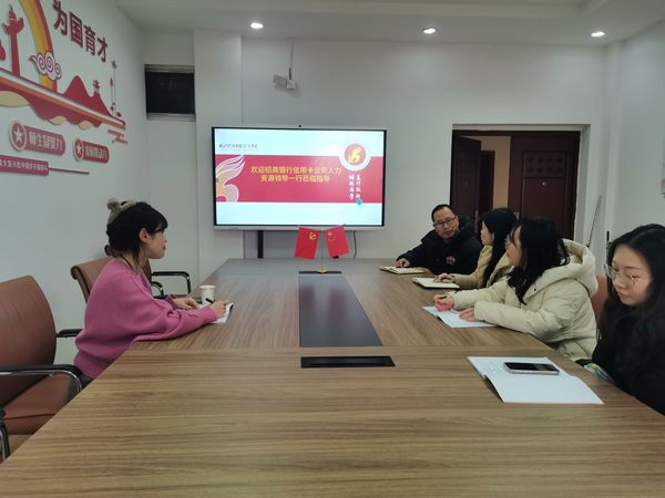 本网讯 2月28日,招商银行股份有限公司信用卡中心武汉运营中心人事部一行来我系走访交流,金融系党总支书记朱卉、副书记张平平、毕业班级辅导员参与交流座谈。