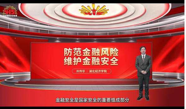 本网讯(通讯员 徐丽亨)今年是总体国家安全观提出的十周年,近日,举办高校湖北经济万搏买球联赛官网(中国)官网党委常委、金融万搏买球联赛官网(中国)官网院长、研究生处处长、二级教授、博士生导师许传华教授受邀参加“湖北名师工作室”荆楚网(湖北日报网)“我为国家安全代言”——“总体国家安全观十讲”金融领域专家宣讲,他讲解的主题为“防范金融风险 维护金融安全”。
