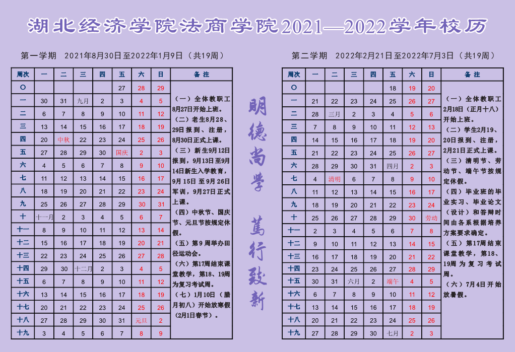 2021-2022学年校历卡