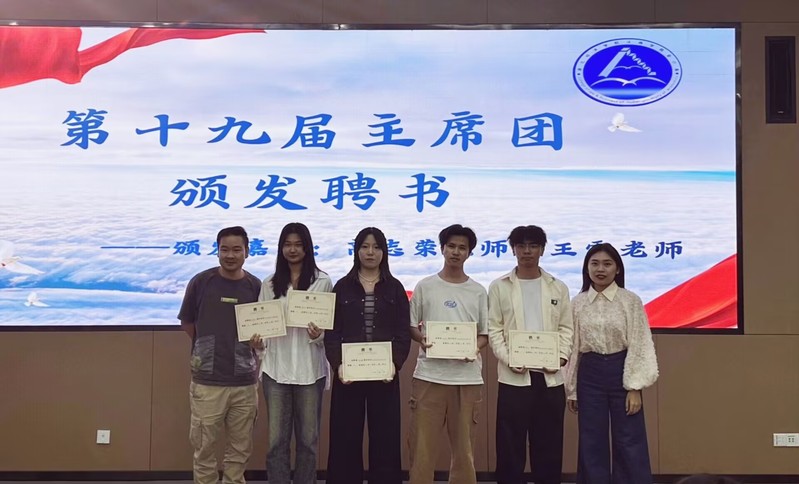 高志荣首先对上届学生会成员的贡献表示了高度赞扬,并与鲁龙航、王雪一同为前任主席团成员颁发了荣誉聘书。随后,主席团成员及各部门部长为新任部长和干事颁发聘书,以表彰他们过去一年的辛勤工作和卓越成就。