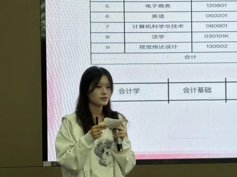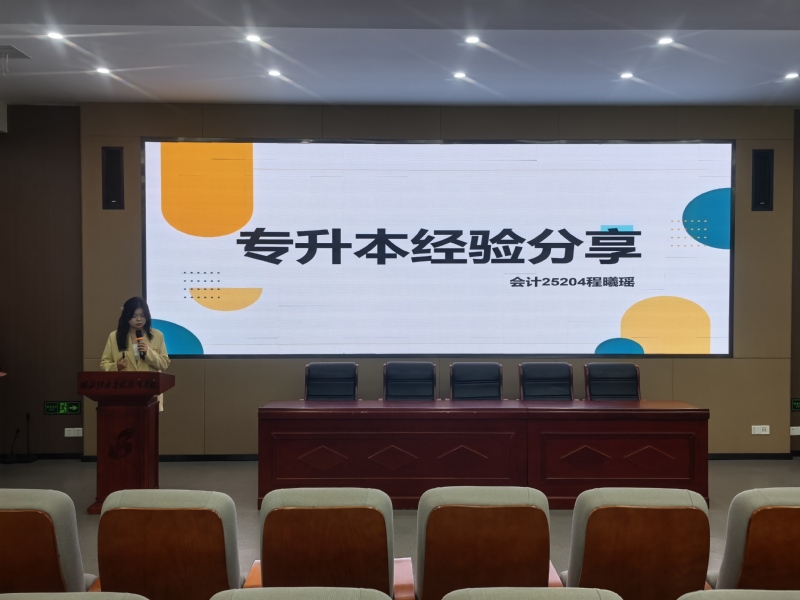 本网讯(通讯员 李雨轩 陈一凡 摄影 吴思睿)为帮助会计系学子明确专升本备考方向、掌握科学高效的复习方法。会计系10月15日18:30于逸夫楼(101室)报告厅举办专升本经验分享交流会。本次分享会特邀优秀在校学生王诺凡、程曦瑶两位同学担任主讲人。