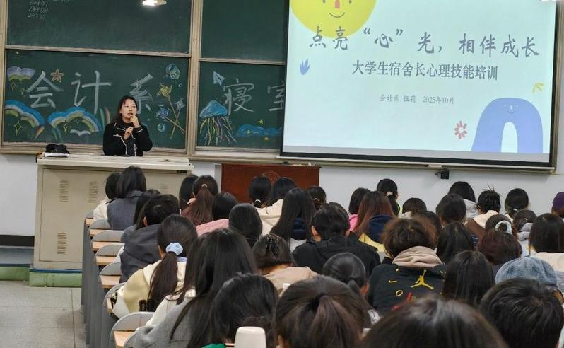 本网讯(通讯员 唐露)为夯实基层学生工作队伍,提升寝室长心理健康服务能力,10月22日晚6:30,会计系于教四201教室召开“赋能中坚力量,共建成长家园”主题寝室长培训会。本次培训由会计系心理专干伍莉主讲,全系大二年级寝室长参会,共同学习心理健康知识与危机应对技能。