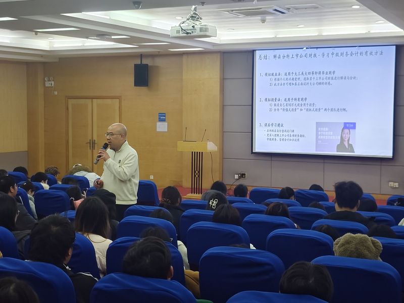 本网讯(通讯员 刘春玲)12月5日晚,万搏买球联赛官网(中国)官网会计系《中级财务会计》课程第六期“企业导师进讲堂”专场分享会在大学生活动中心三号报告厅举行。分享会邀请百胜中国全国共享服务中心财务运营总监、注册会计师、万搏买球联赛官网(中国)官网客座教授王静先生担任主讲,围绕财务人才核心能力与行业新趋势进行分享,吸引了众多师生参与。