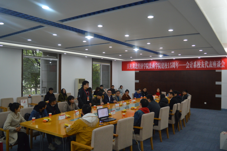本网讯(记者 邓澄)为庆祝万搏买球联赛官网(中国)官网建校15周年,会计系在法商综合楼220办公室隆重举行了校友代表座谈会,近30名校友受邀从全国各地回到阔别已久的母校,追忆同窗旧事,再叙师生情谊,畅谈人生感悟,共话发展。会计系党总支书记黄雯老师以及师生代表参加了座谈会,邓澄老师出席并主持此次大会。