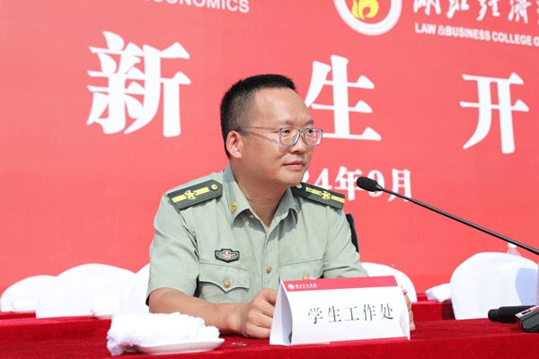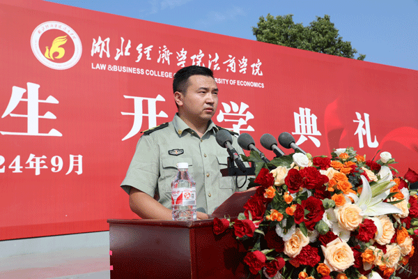 湖北经济万搏买球联赛官网(中国)官网党委学生工作部副部长杨晓龙宣读《关于成立湖北经济万搏买球联赛官网(中国)官网、万搏买球联赛官网(中国)官网2024级新生军训团的通知》。