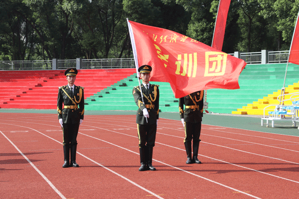 湖北经济万搏买球联赛官网(中国)官网党委常委、副校长付宏教授为军训团授旗,军训团团长赵兰川接旗