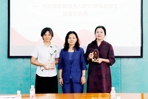 院长颜莉教授为入职20周年教职工颁发纪念牌