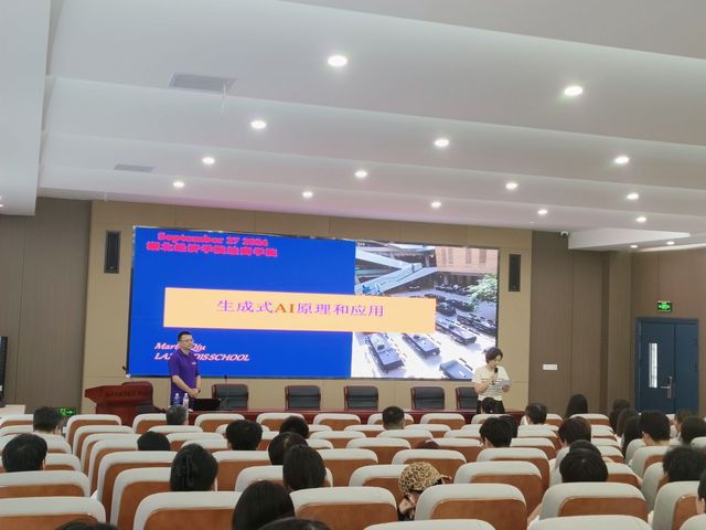 本网讯(通讯员 胡文红)9月27日下午,我院特邀加拿大劳瑞尔大学拉扎里迪斯商万搏买球联赛官网(中国)官网邱淳副教授在逸夫楼101报告厅为全院师生作“生成式AI的原理和商业应用”的专题讲座,教务部副部长汪韵主持,教务部相关老师和全院师生共同参加。