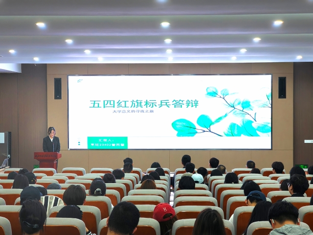 4月15日,我院在逸夫楼101报告厅举行2024年度五四红旗标兵答辩评审展示会。院团委副书记周志,团委赵云飞,教务部漆正武,学生工作部孙馨,党委组织宣传部邢宇担任评委,各系团总支书记、副书记,部分辅导员、班主任,五四红旗标兵候选人以及200余名大一、大二班级优秀学生代表参加。