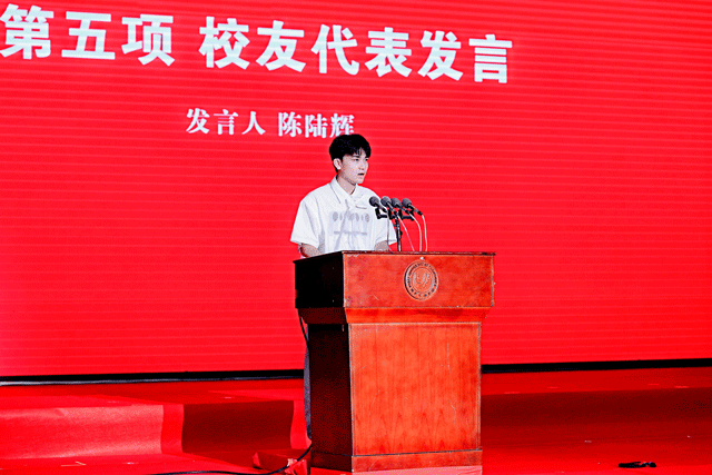 创业校友代表、武汉开讯科技有限责任公司CEO陈陆辉发言,他感恩母校教会了他永远不被“标准答案”束缚,时刻保持“复盘思维”、在思维碰撞中诞生新构想,永远保持勇气、人生没有“妥协”二字。他希望学弟学妹永葆对世界的好奇,让生命成为永不闭合的括号;敢于在试错中成长,让挫折成为进阶的阶梯;心怀家国天下,让个人理想与时代同频共振。